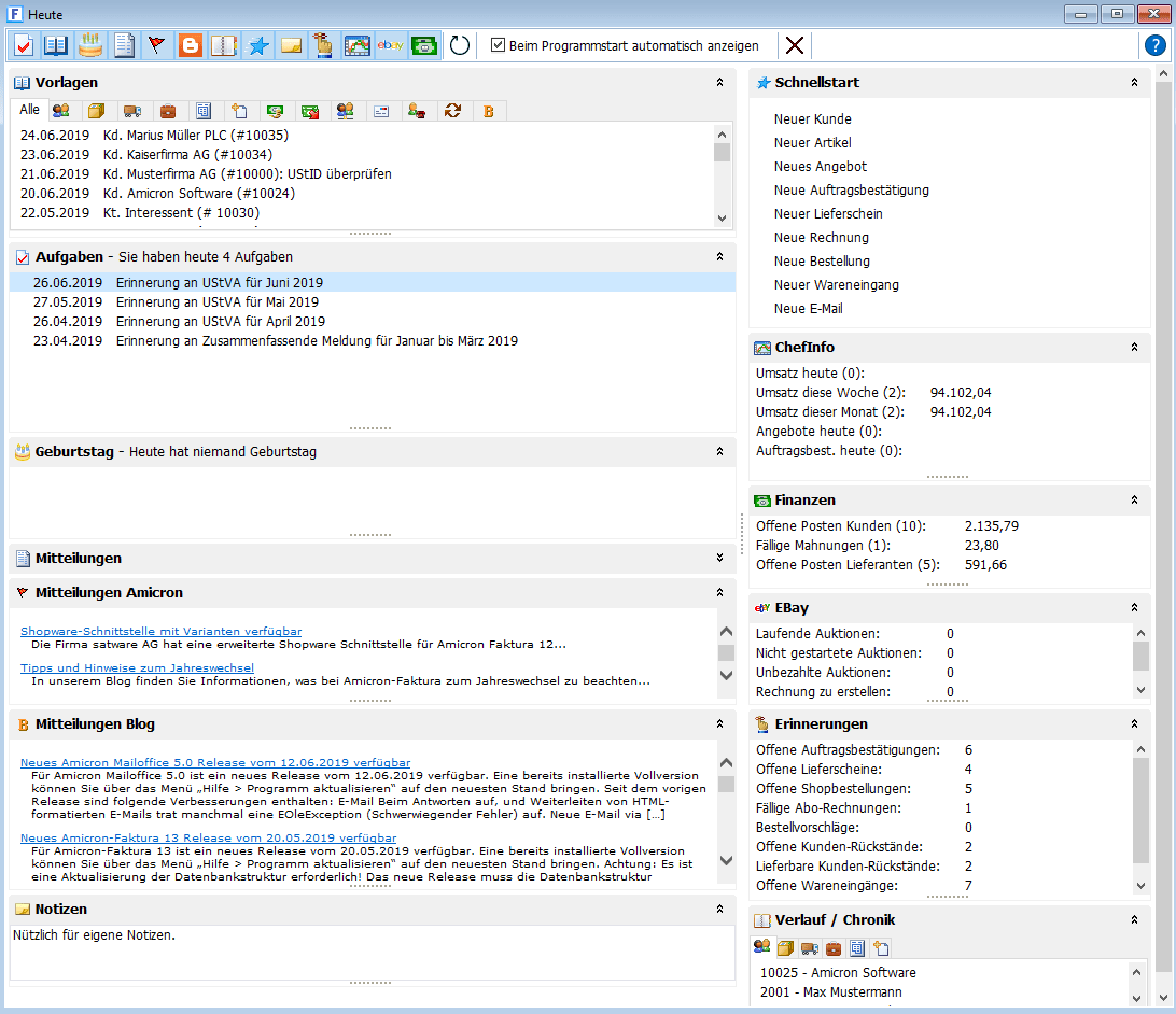 Mit Amicron-Faktura können Sie über das optionale Fibu-Modul die Umsatzsteuervoranmeldung mittels Elster-Schnittstelle abgeben. Für UStVA-Zeiträume ab Januar 2026 ist ein Update der Elster-Schnittstelle notwendig. Auch die Zusammenfassende Meldung benötigt dieses Update. Bei Amicron-Faktura 14 ist ab dem Release vom 15.12.2025 die aktuelle Elster-Schnittstelle enthalten. Sollten Sie das Fibu-Modul erworben haben, prüfen Sie bitte in der Titelleiste […]