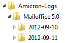 Die Quelltexte der gesendeten und empfangen E-Mails werden als einzelne Dateien in einem Unterordner des Log-Verzeichnisses abgelegt. Der Name des Unterordners wird aus dem Datum, an dem die E-Mails gesendet/empfangen wurden, gebildet.